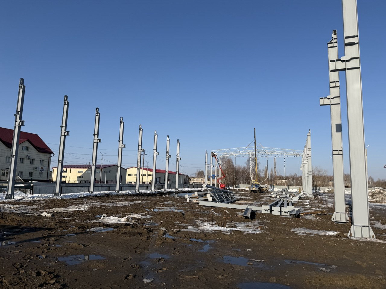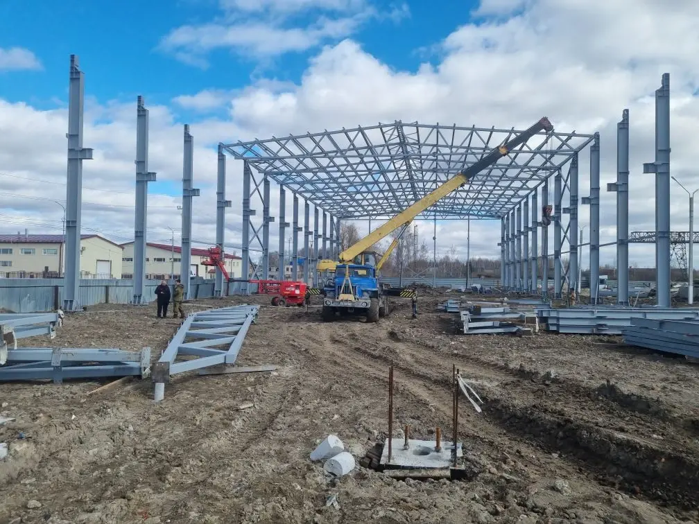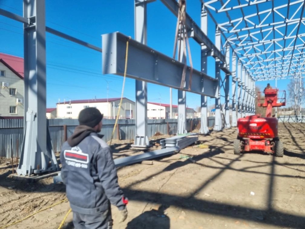 Монтаж каркаса здания 30х90, г.Тюмень Ул. Произведения 27/2
